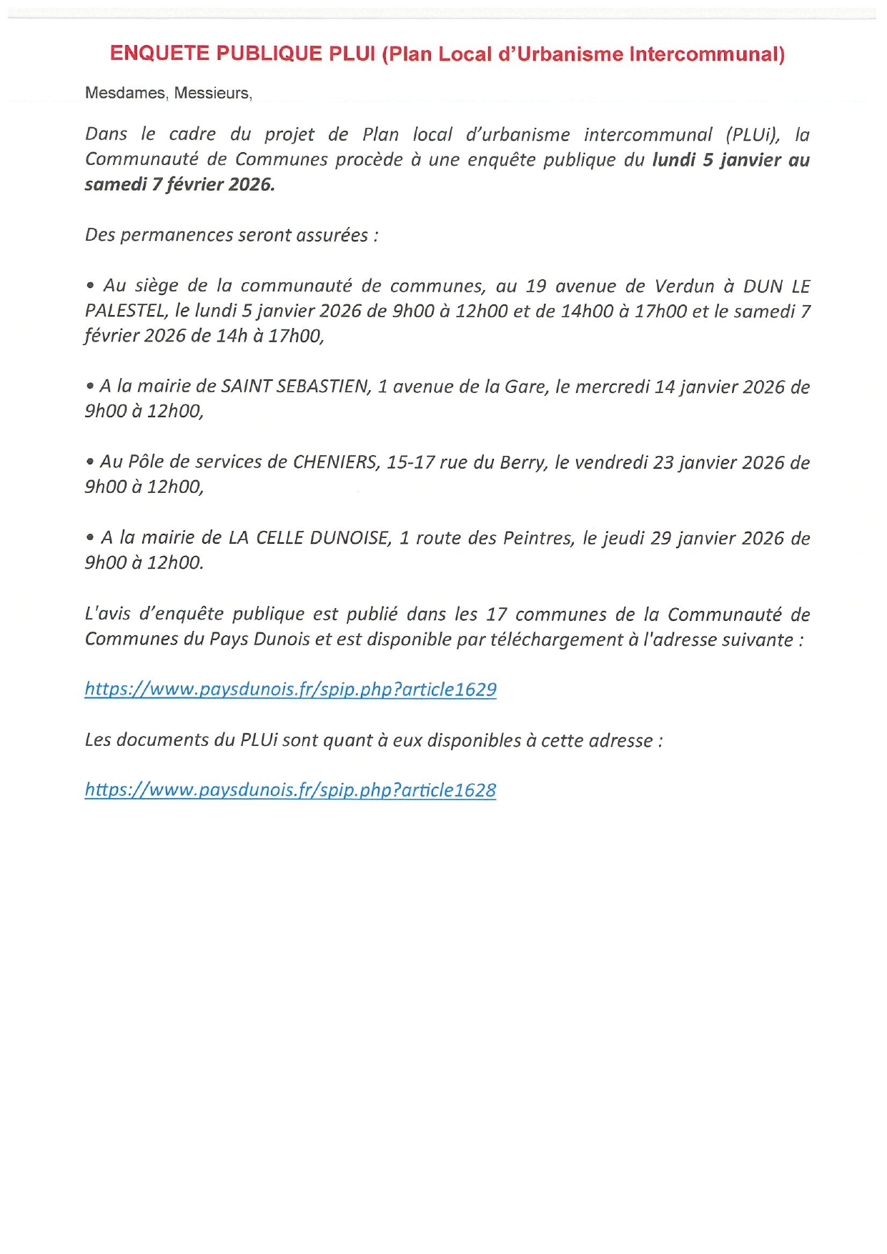 L'avis d'enquête publique est publié dans les 17 communes de la Communauté de Communes du Pays Dunois et est diponible par téléchargement à l'adresse suivante